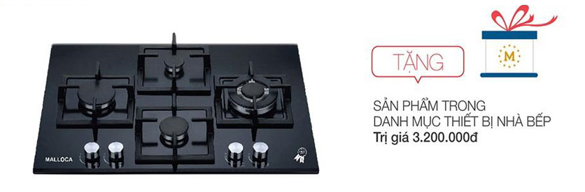 4.Mua bếp gas âm Malloca GHG 724 MCB ( Trị giá : 8.900.000 VND ) Được tặng thêm 3.200.000đ dùng để mua các sản phẩm Malloca có giá trị tương đương