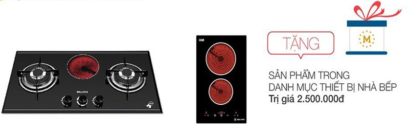 5. Mua bếp gas, bếp DOMINO điện , từ ( Trị giá từ : 9.570.000 - 11.000.000 VND ) Được tặng thêm 2.500.000đ dùng để mua các sản phẩm Malloca có giá trị tương đương