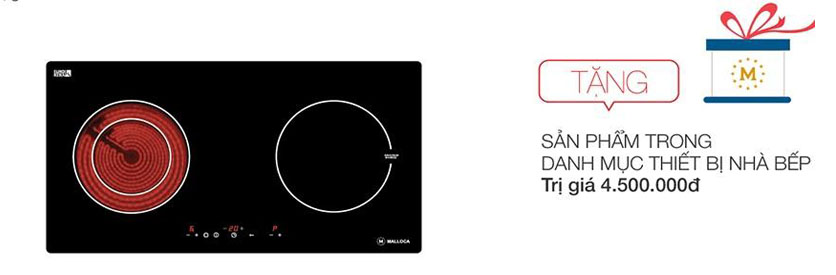 7. Mua bếp điện từ Malloca, bếp kết hợp ( Trị giá từ 16.950.000 - 23.320.000 VND ) Được tặng thêm 4.500.000đ dùng để mua các sản phẩm Malloca có giá trị tương đương