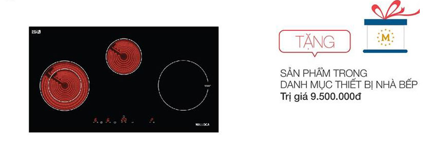 9. Mua bếp kết hợp điện từ ( Trị giá từ 29.370.000 - 32.340.000 VND ) Được tặng thêm 9.000.000 VND dùng để mua các sản phẩm Malloca có giá trị tương đương
