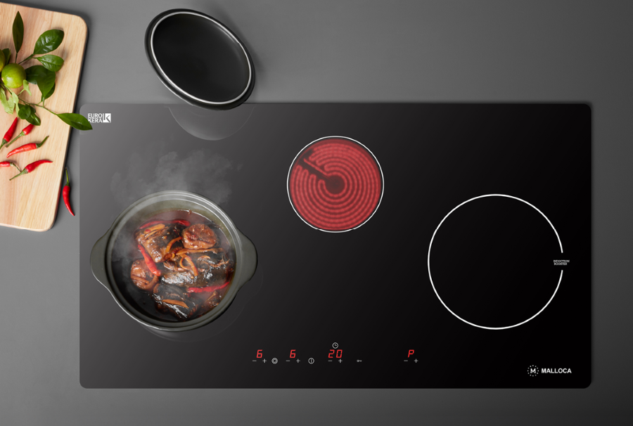- Mẫu bếp điện hồng ngoại kết hợp từ 03 vùng nấu ( 01 vùng nấu từ + 02 vùng nấu điện ), lắp đặt âm