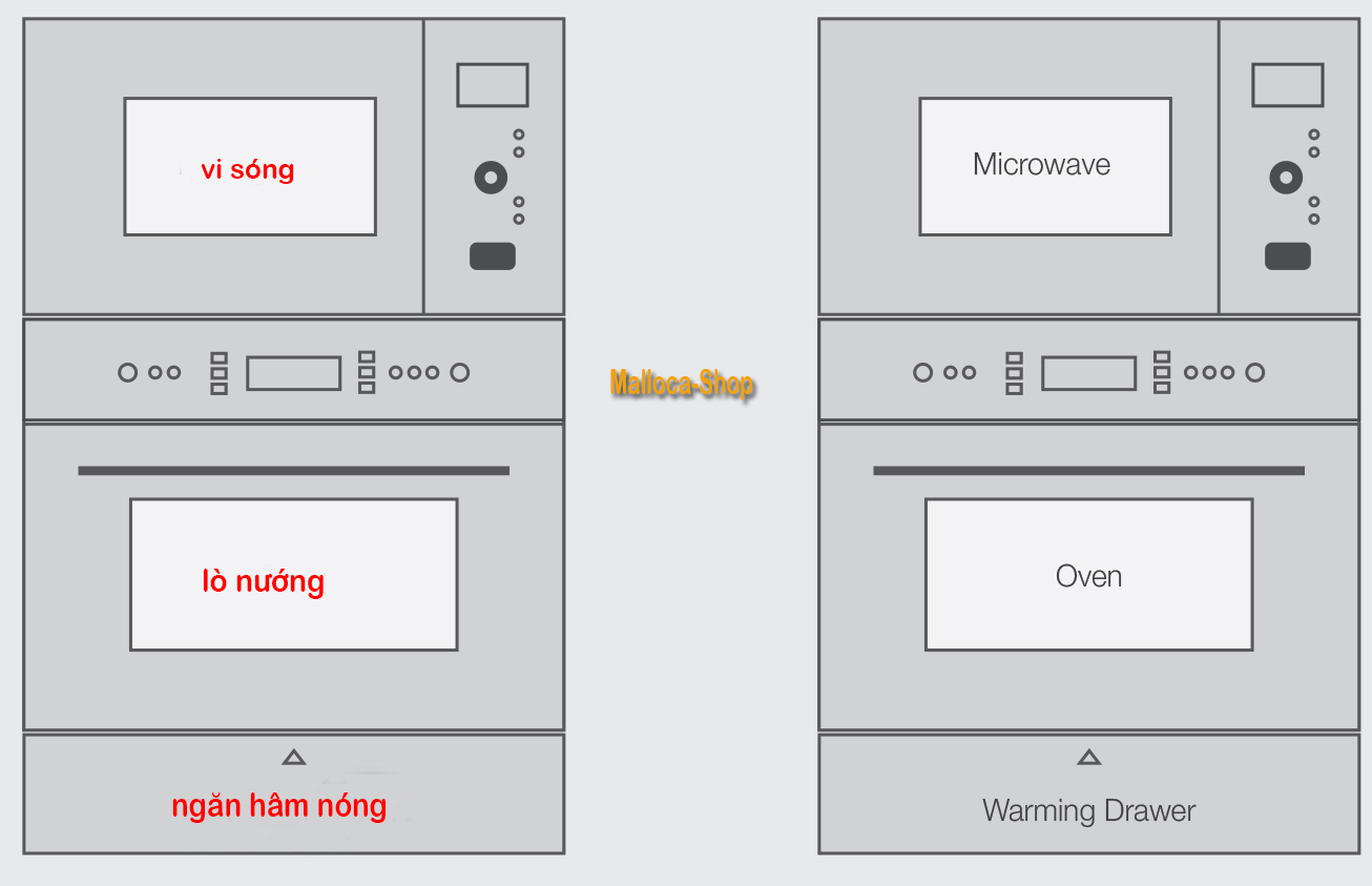 Sự kết hợp đơn giản giữa chiếc lò nướng dùng để chế biến các món ăn và bên dưới là ngăn hâm nóng thức ăn tiện lợi