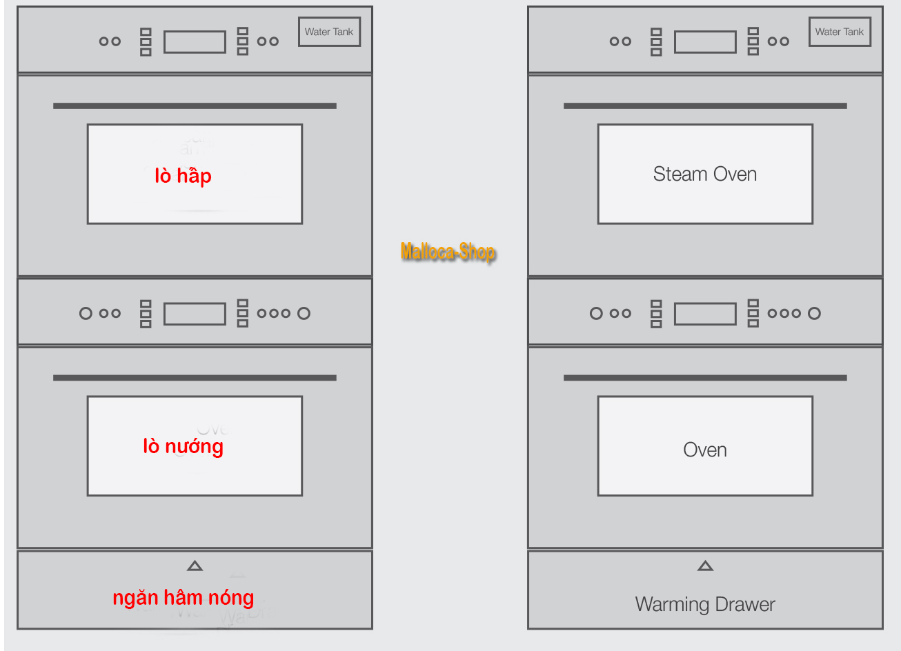 3. Bộ Compact 3 : lò hấp + lò nướng + ngăn hâm nóng thức ăn