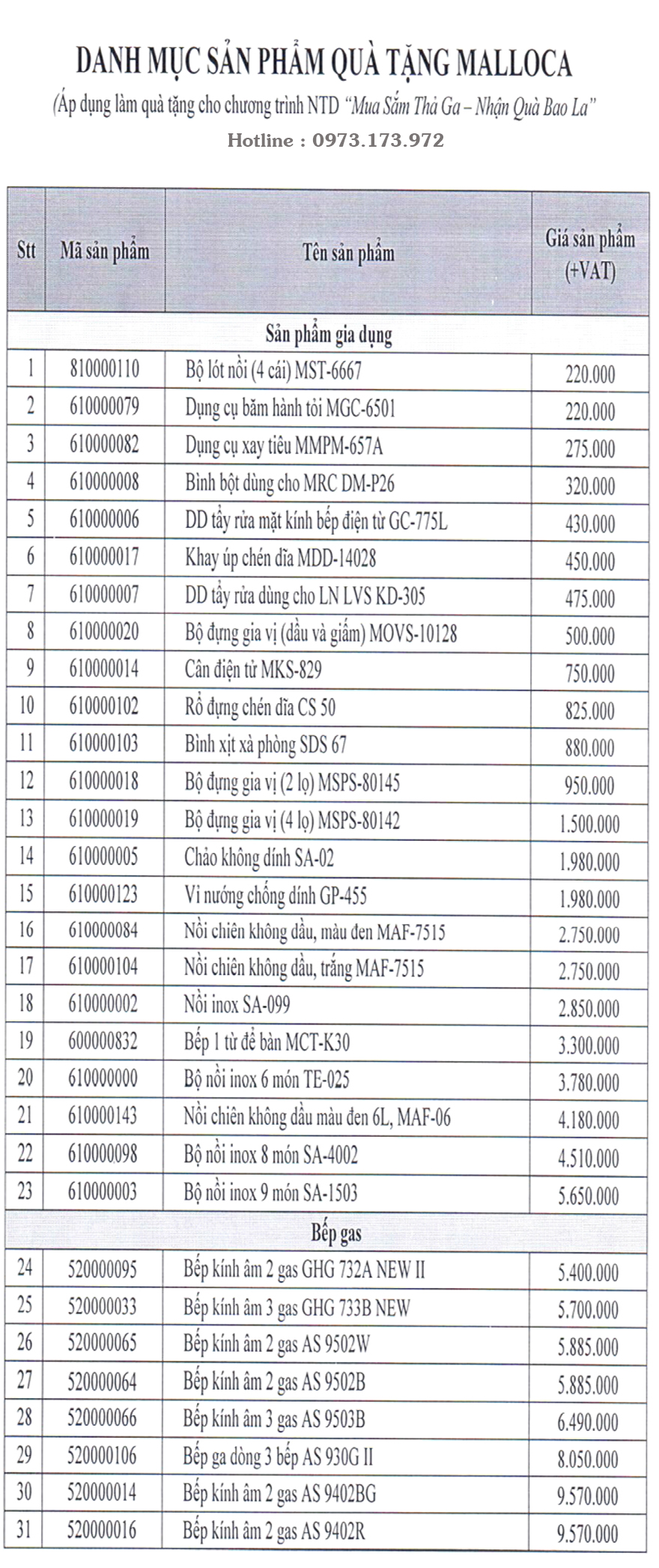 » Danh Mục Quà Tặng Malloca Tháng 10/2022