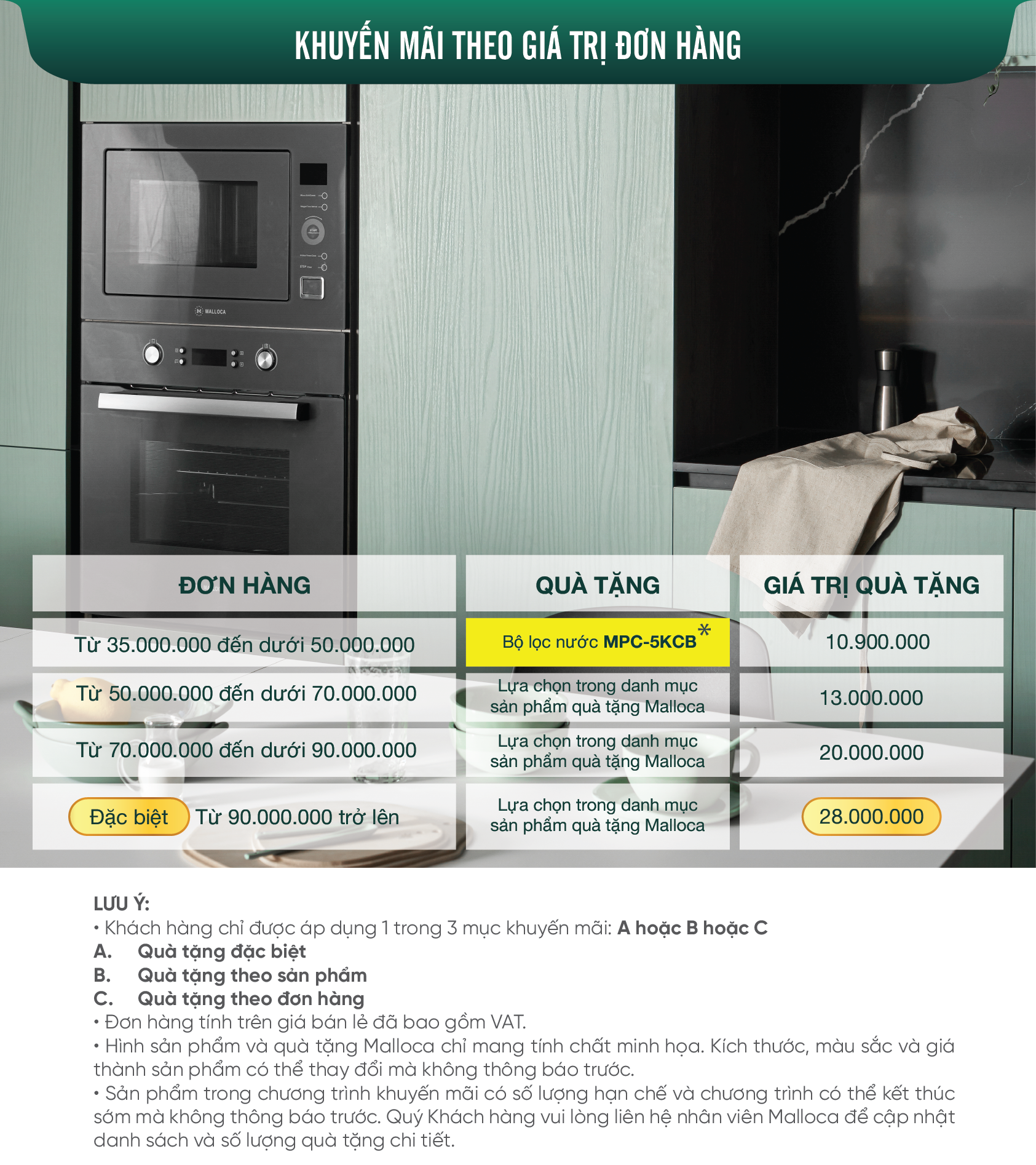 Đối tượng áp dụng : tất cả khách hàng khi mua các sản phẩm thương hiệu Malloca tại hệ thống Showroom Malloca-Shop